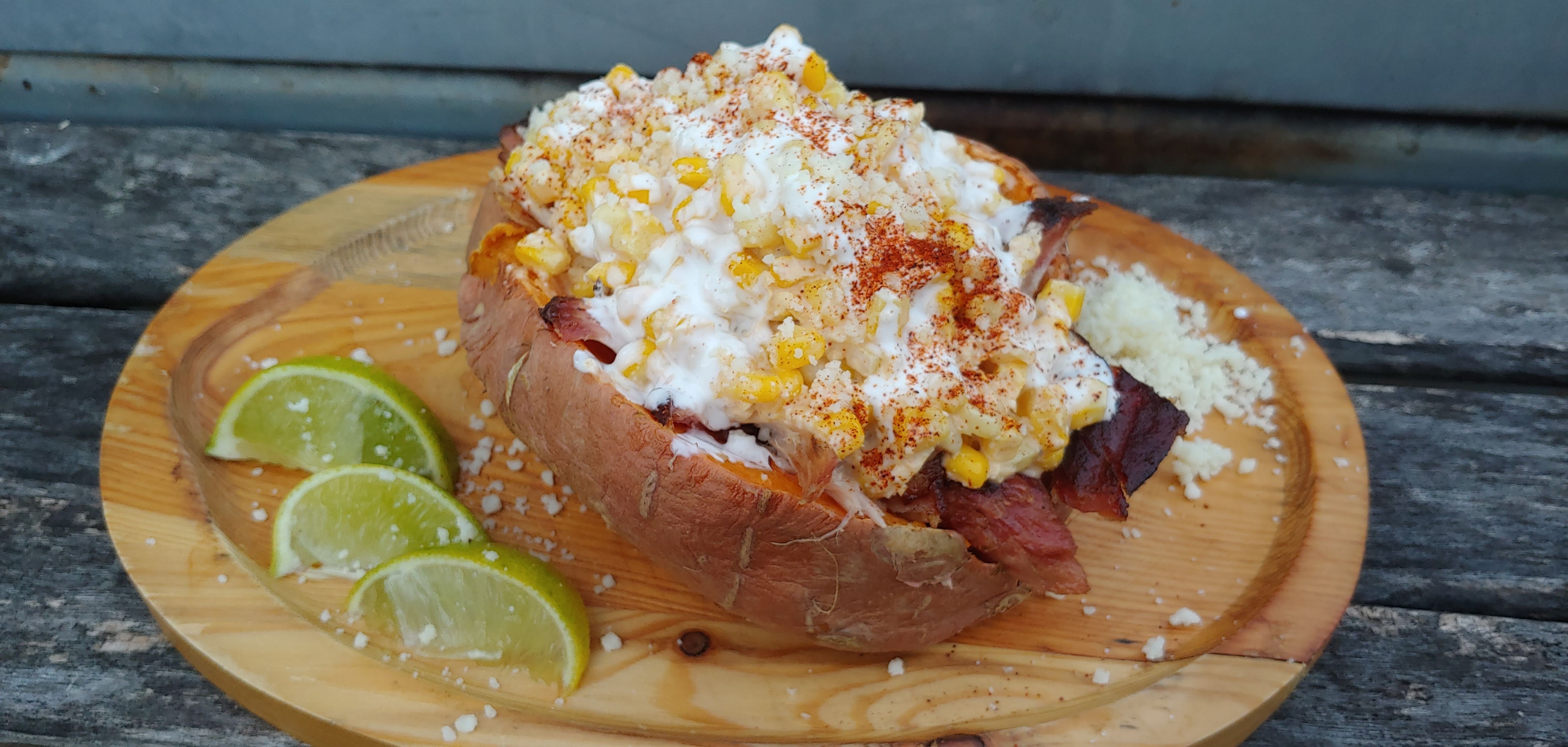 Leftover Carnitas and Elotes Stuffed Sweet Potato